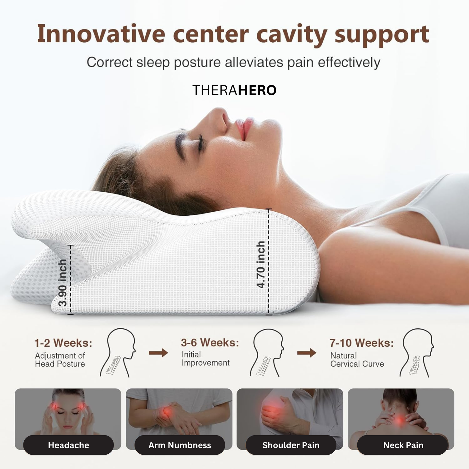This pillow supports your spine's natural curvature, preventing and easing discomfort from conditions such as cervical kyphosis and neck stiffness.